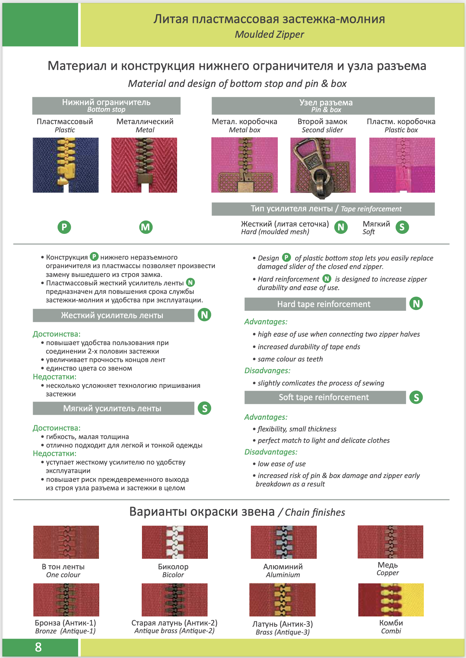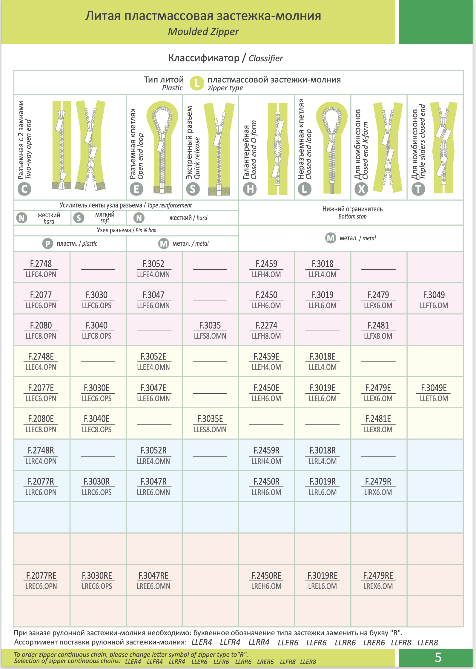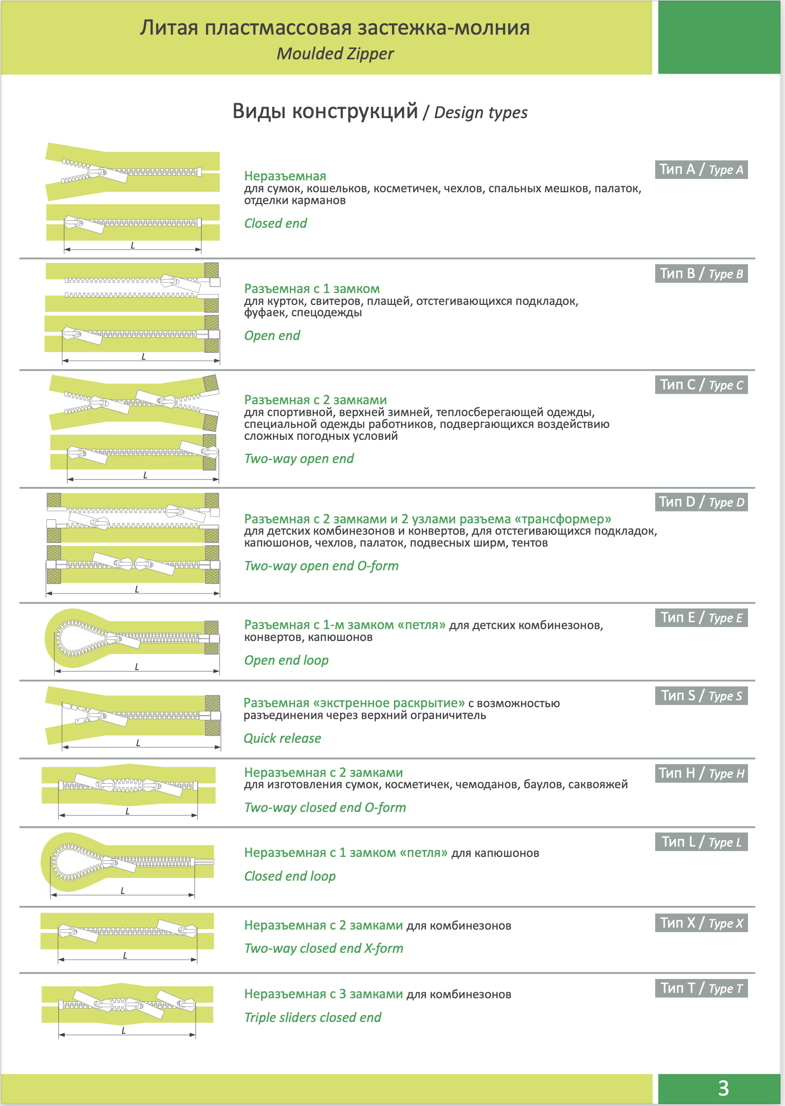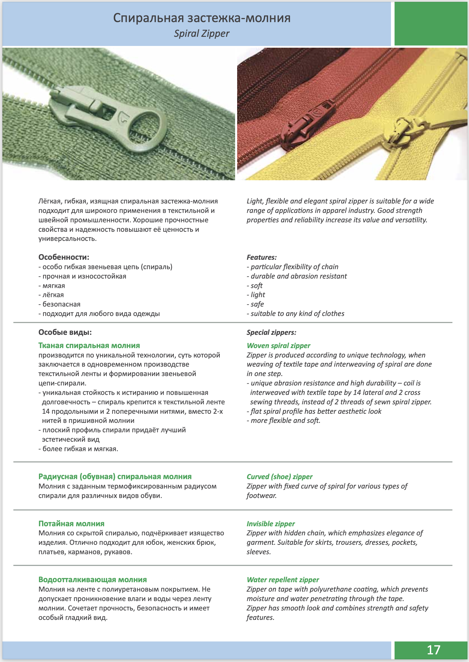 Наша компания производит качественную тракторную пластиковую молнию, Спиральную молнию-застежку и фурнитуру для женского нижнего белья. А так же фурнитуру для одежды. Мы производим молнию-застежку для рабочей одежды высокой прочности,
